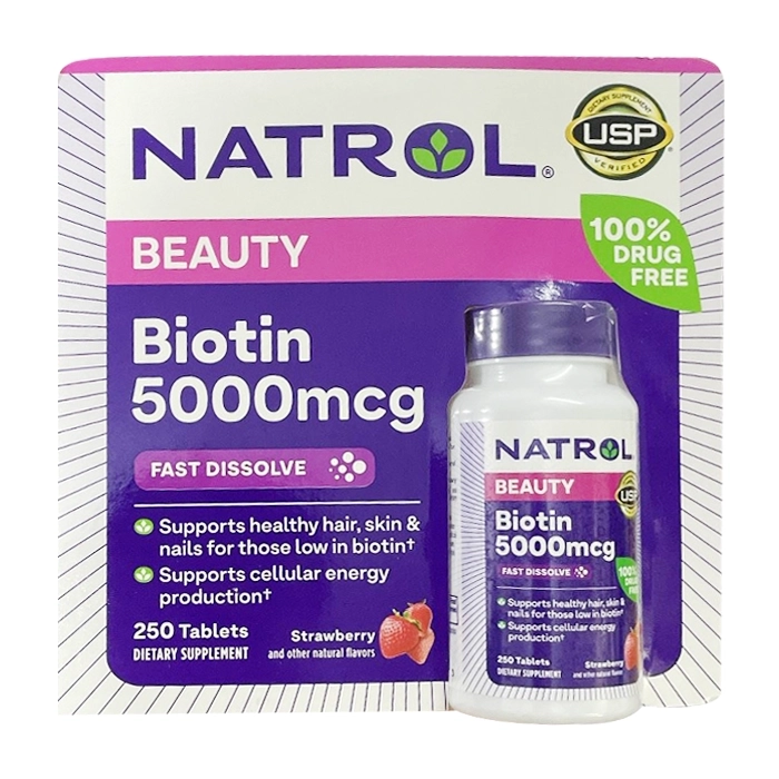Tpbvsk chăm sóc tóc Natrol Biotin Beauty 5000mcg, Chai 250 viên