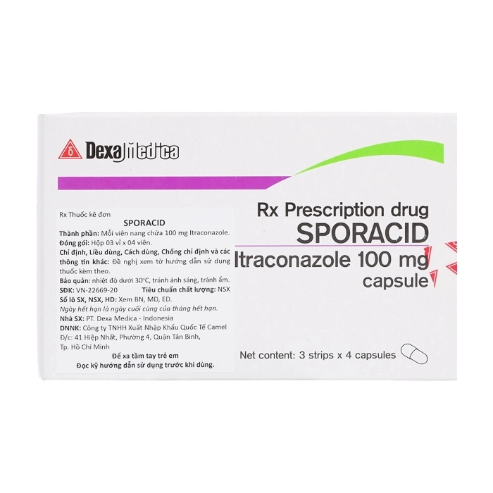 Sporacid 100mg Dexa Medica 3 vỉ x 4 viên (Itraconazole)