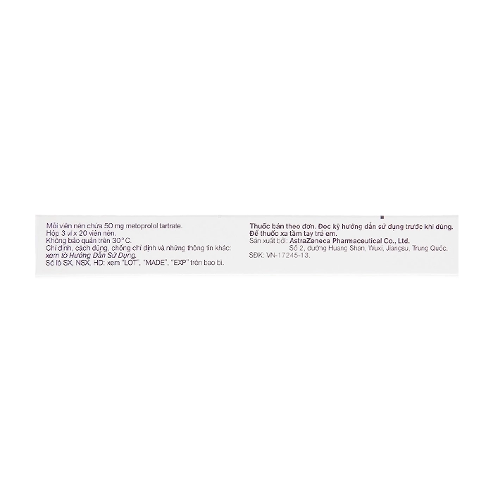 Thuốc tim mạch Betaloc 50mg ( Metoprolol 50mg )