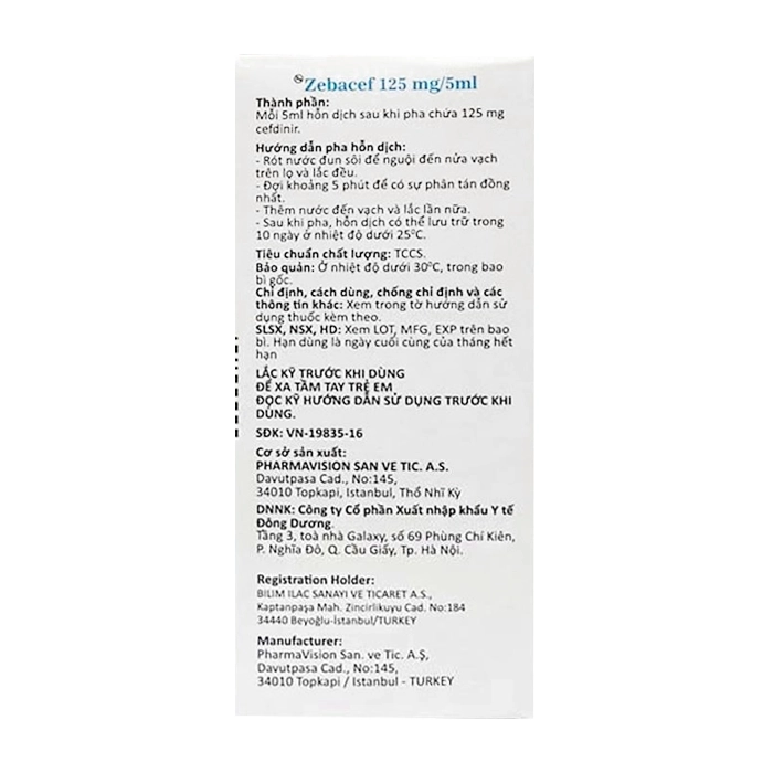 Zebacef 125mg/5ml Bilim Ilac 100ml (Cefdinir)